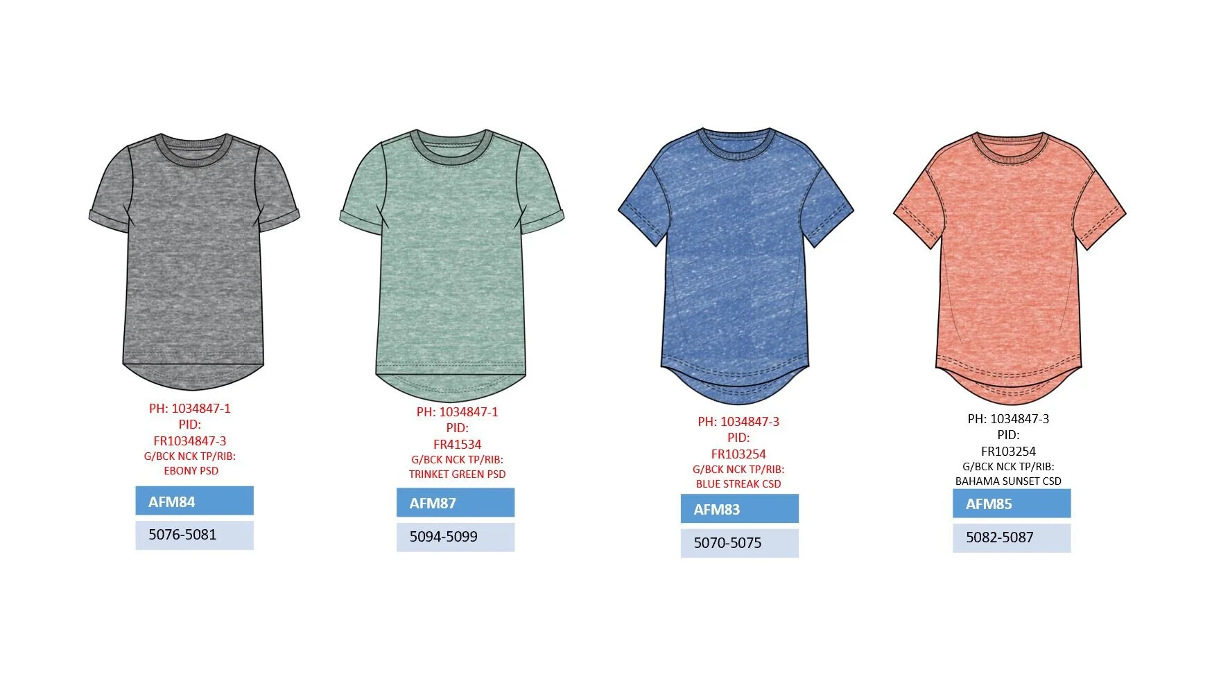 Market shifts towards a boxier fit and dropped shoulder drove these two new styles that ultimately went to development.